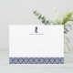 Use these preppy chic flat cards for all your correspondence! Summery personalized design features a tiny seahorse illustration and your name or monogram in classic nautical navy blue, with a patterned bottom border in matching navy.