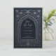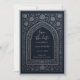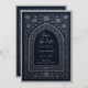 This sophisticated navy blue and silver wedding design embodies quiet elegance and cultural refinement. The intricate silver floral detailing and the graceful arched frame convey timeless beauty, harmony, and devotion, while the deep blue background adds a sense of calm and luxury. The delicate Arabic calligraphy enhances the design’s serene character, making it perfect for Arab weddings, Nikah ceremonies, and refined modern celebrations that honour love and connection.