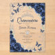 Navy silver and white Quinceanera celebration invitation. Features script font, silver butterflies, watercolor roses and tiara. Perfect for an elegant princess style glam celebration. Personalize with your own details. Stylish transparent or frosted acrylic invitations.