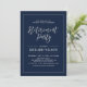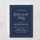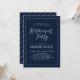 Celebrate your special day with this stylish modern Retirement party invitation template. This design features chic calligraphy and a simple frame with a navy blue background.