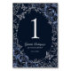 Navy silver Quinceanera celebration table number cards. Features, script font, glitter silver butterflies, watercolor roses and tiara. Perfect for an elegant princess style glam celebration. Personalize with your own details. Printed Zazzle invitations or instant download digital printable template.
