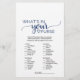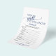 This navy simple calligraphy "what's in your purse" game is perfect for an elegant bridal shower. The front of the game card features "how well do you know the bride", and the back of the card features "what's in your purse". The white and blue design features chic rustic typography and a lovely romantic heart. Personalise the front of the card with the brides name and bridal shower date.