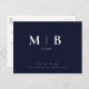 Navy Simple Contemporary Monogram Save the Date Postcard