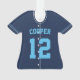 Commemorate an awesome season for your favourite baseball player with this cool custom ornament in a navy blue and light blue colorway. Personalise the front with the player's name and number, and add more details to the back, including the team or league name, season, age, position, and coach name.
