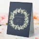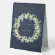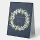 An elegant dark navy winter wedding table top sign for your favours station. Featuring hand painted snowberries and eucalyptus arranged into a beautiful botanical wreath. All text is fully editable so you can change the message and alter the font style/colour/size. Coordinating items available.