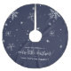 This navy snowflake christmas tree skirt is the perfect modern holiday decoration. The design features falling snowflakes and the festive phrase "have yourself a merry little christmas". Personalise the tree skirt with your family name.