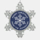 A white snowflake on a navy blue background with "Merry Christmas" from the family in a circle around it.