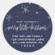 Navy Snowflake Christmas Return Address Classic Round Sticker
