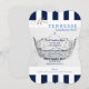 Created in a stunning striped style for a fun fresh setting for your pageant or luncheon event. Shown in classic Navy Blue and White stripes on front and back is white on fine quality paper, this program/menu card has a large silver coloured four-point crown in the centre. Text written over top of crown. Fancy bracketed edging. We've created the template for you, simply change the information to your own at the right side of your screen in the selection menu. Customise further if you desire by changing the paper selection,text or text colours, background colours, text styles or upload your own image. Lovely choice for receptions, retirement parties, pageant parties, balls, luncheons, events, weddings or veterans events.