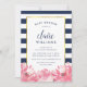 Navy Stripe & Pink Peony Baby Shower Invitation