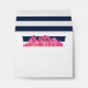 Beautiful notecard sized envelopes turn your cards into a lovely surprise thanks to a navy blue striped lining with a hot pink peony peeking out. Matching petite peony on back flap.