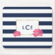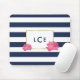 Navy Stripe & Pink Peony Monogram Mousepad