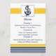 navy blue and white stripes with yellow border and white dotted border featuring an anchor, Mod nautical wedding menu cards. Matching products also available.