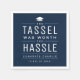 Modern "the tassel was worth the hassle" typography design in navy blue and white, great personalised napkins for graduation party.