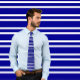 You'll look cool and stylish in this bunched thin horizontal striped tie. This tie features thin white horizontal stripes on a navy background.