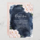 Navy Watercolor Beautiful Blush Floral Baptism Invitation