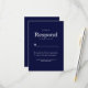 Navy Simple Wedding RSVP Response Card. Dinner & Dancing.