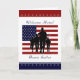A beautiful card to welcome home a friend or family member from their service in the Navy! The design features the American flag, and a silhouette of soldiers in front, with stars and stripes. The main colours are red, white and blue and black. Please visit our store for more patriotic postcards, greeting cards, fashions, and gifts, in different, styles, designs and colours for men, women and children.