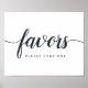This elegant yet simple sign invites wedding or party guests to take a favour. Personalise with two lines of custom text in rich navy blue calligraphy and block lettering (shown with "Favours; please take one").