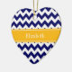 Navy White Chevron ZigZag Goldenrod Name Monogram Ceramic Ornament