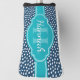 Stylish, trendy dark blue and white dot pattern in the background, topped with a bright teal blue label featuring a customisable name and monogram template.
