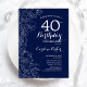 Navy White Floral 40th Birthday Party Invitation. Minimalist modern design featuring botanical outline drawings accents and typography script font. Simple trendy invite card perfect for a stylish female bday celebration. Can be customised to any age. Printed Zazzle invitations or instant download digital printable template.