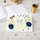 Romantic navy & white flowers with gold leaves botanical wedding guest book