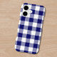 The navy and white gingham pattern features dark blue, white, and light blue squares in a bold, buffalo plaid.