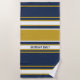 Navy White Gold Stripes Pattern Personalised Beach Towel