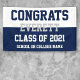 Hang this Navy & White Minimalist Graduation Party Banner to honour your graduate. Personalise with your grad's name, school, and class year. This bold school colours banner features a classic font and plenty of school spirit.