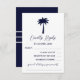 Navy White Palm Tree Coastal Wedding RSVP Card