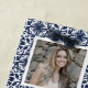 Display seven favourite photos or vacation memories on this chic navy and white beach towel, featuring a gridded layout and square photos. Perfect for your Instagram snaps, towel features 7 photo templates as well as your single initial monogram and family name, on a navy blue Mediterranean patterned background.