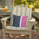 Navy White Pink Modern Stripe Outdoor Throw Pillow