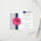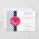 Navy White Polka Dot Pink Daisy Wedding RSVP Card