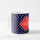 Navy White Polka Dots Coral Quatrefoil 3 Monogram Coffee Mug
