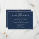 Minimalist classic formal chic calligraphy script modern navy blue and white wedding save the date card with scanning QR code to the wedding website. +++++++++++ Suitable for classy, elegant, summer nautical, or winter mountain destination weddings. ++++++++++ Easy to personalize with your text!