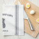 Customise your kitchen with this cute personalised kitchen towel featuring your family name and year established in rich navy blue lettering accented with a pineapple illustration.