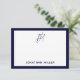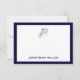 Double-sided timeless custom flat note card design features navy blue and white monogram design with a script monogram at the top and typographic name in the lower thirds, framed in navy. The back features the script monogram in the lower thirds for coherence in the design. Modern sans serif typography that can be personalised with your name or custom text. Space for your handwritten note is included on the front and back. This card is available in both print and digital formats, allowing you to choose the option that suits your needs.