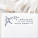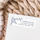 Coastal chic return address labels in classic navy blue and white feature your return address details aligned at the right, accented by two vintage style starfish illustrations in navy.