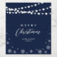 Navy & White String Lights Snow Merry Christmas Wine Label