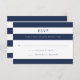 Elegant and simple RSVP cards feature modern lettering on a navy blue and white striped background.