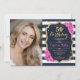 Navy White Stripes Gold Pink Photo 50th Birthday Invitation