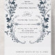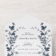 Navy & White Wildflower Silhouette Wreath Wedding All In One Invitation