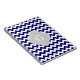 A stylish, modern, chic chevron zig-zag pattern in navy blue and white. Customise the light grey quatrefoil label with your monogram, name or other text. (Click on "Customise it" to change the font, adjust font sizes, font colours, etc.)