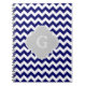 Navy Wht Chevron Grey Quatrefoil Monogram Notebook