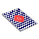 A stylish, modern, chic chevron zig-zag pattern in navy blue and white. Customise the coral red quatrefoil label with your monogram, name or other text. (Click on "Customise it" to change the font, adjust font sizes, font colours, etc.)