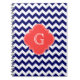 Navy Wht Chevron Zigzag Coral Quatrefoil Monogram Notebook
