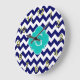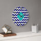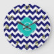 Navy Wht Chevron ZigZag Teal Quatrefoil Monogram Large Clock