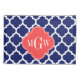 Navy Blue and White Moroccan Quatrefoil Trellis Pattern #5, Coral Red Quatrefoil 3 Initial Monogram Label