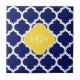 Navy Wht Moroccan #5 Pineapple 3 Initial Monogram Tile